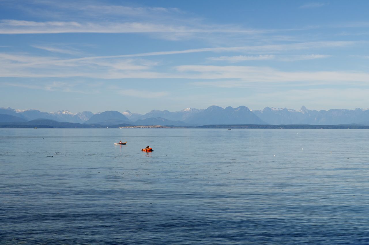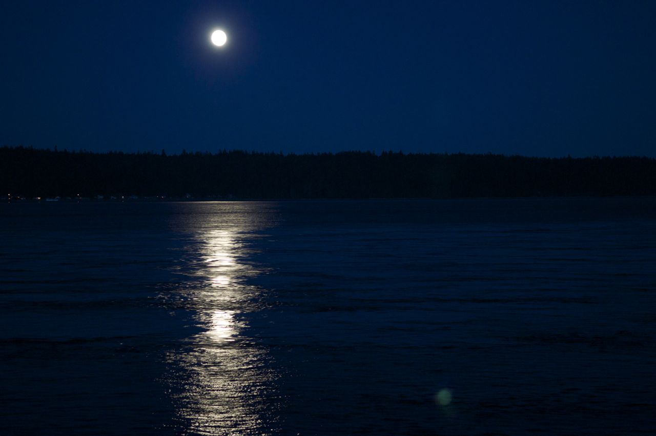 Auf der Rückfahrt ging es noch kurz ans Meer, bevor wir abends einen Spaziergang bei Sonnenuntergang und Vollmond in Campbell River genossen haben.