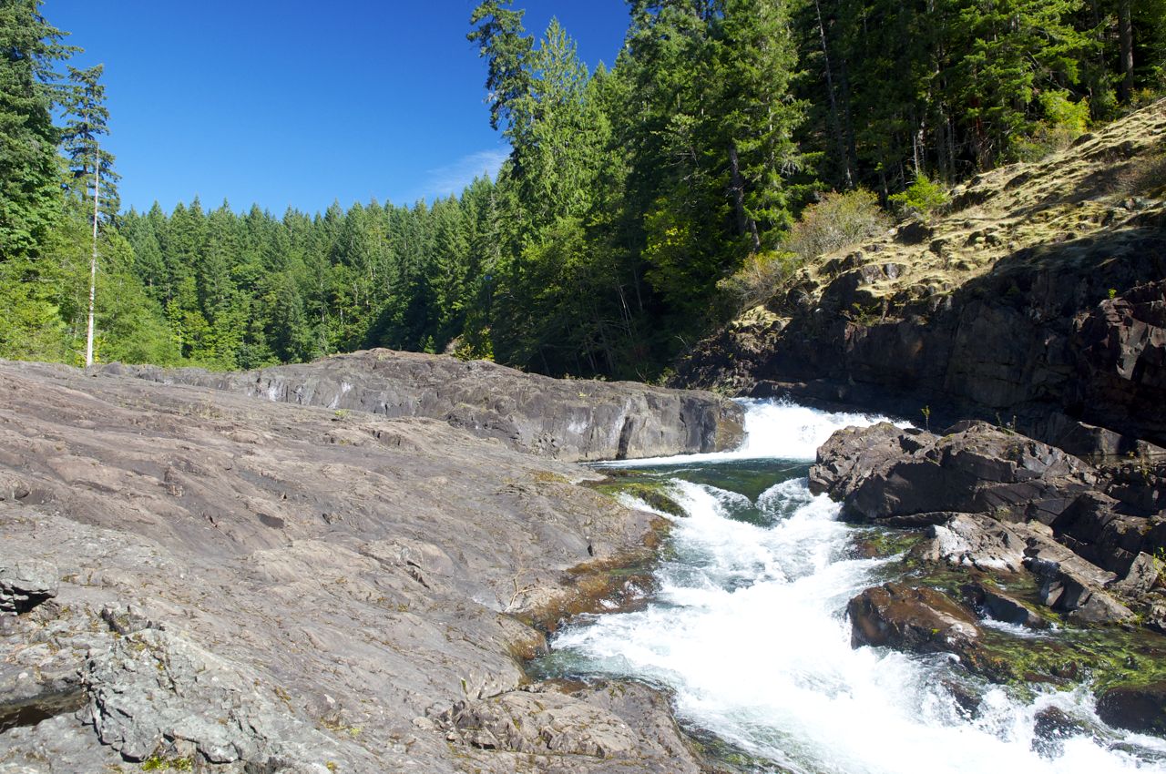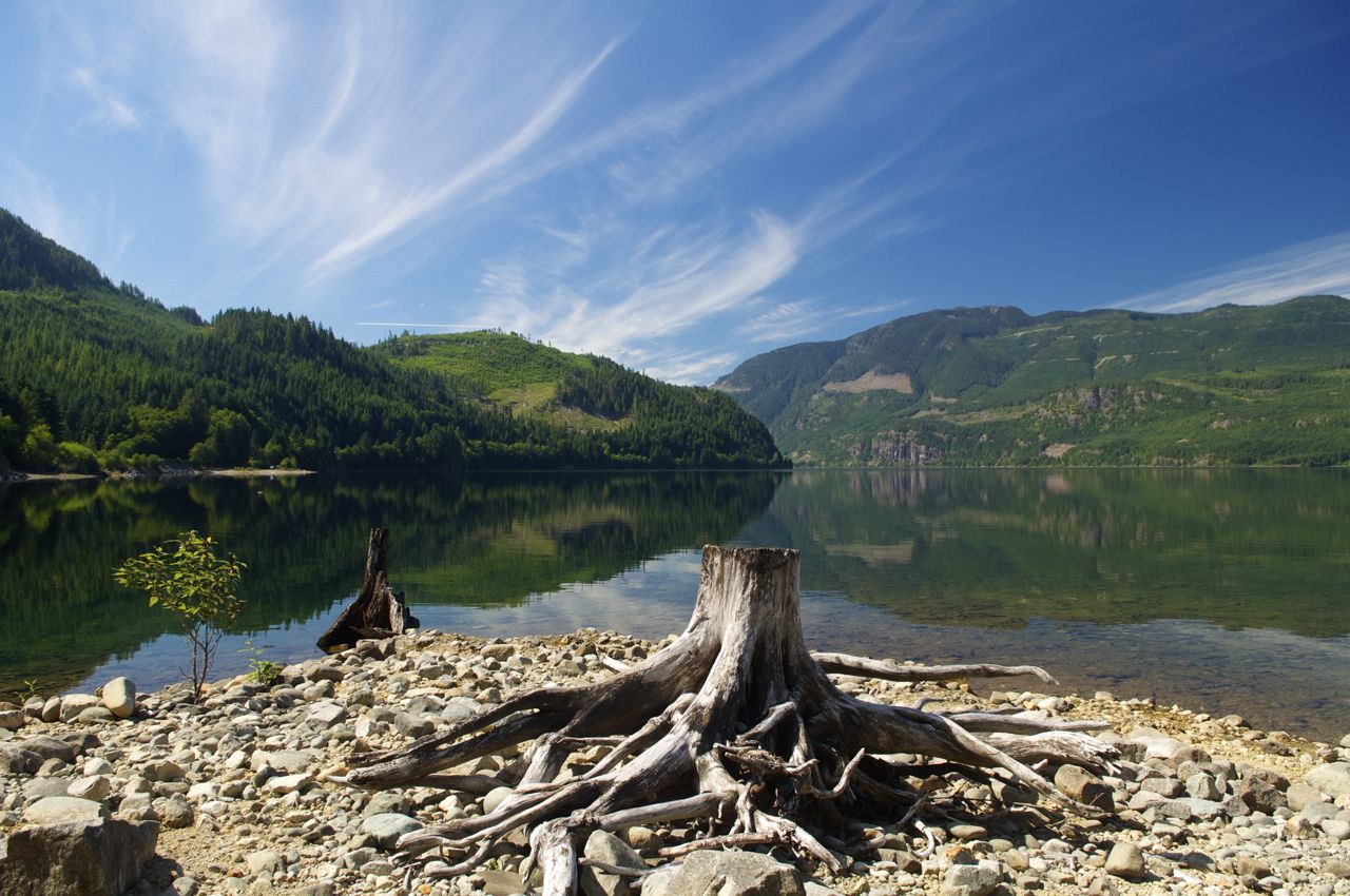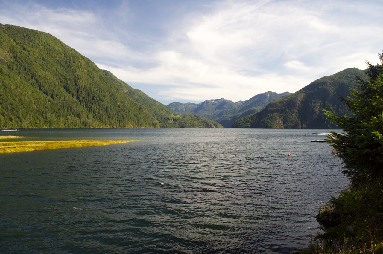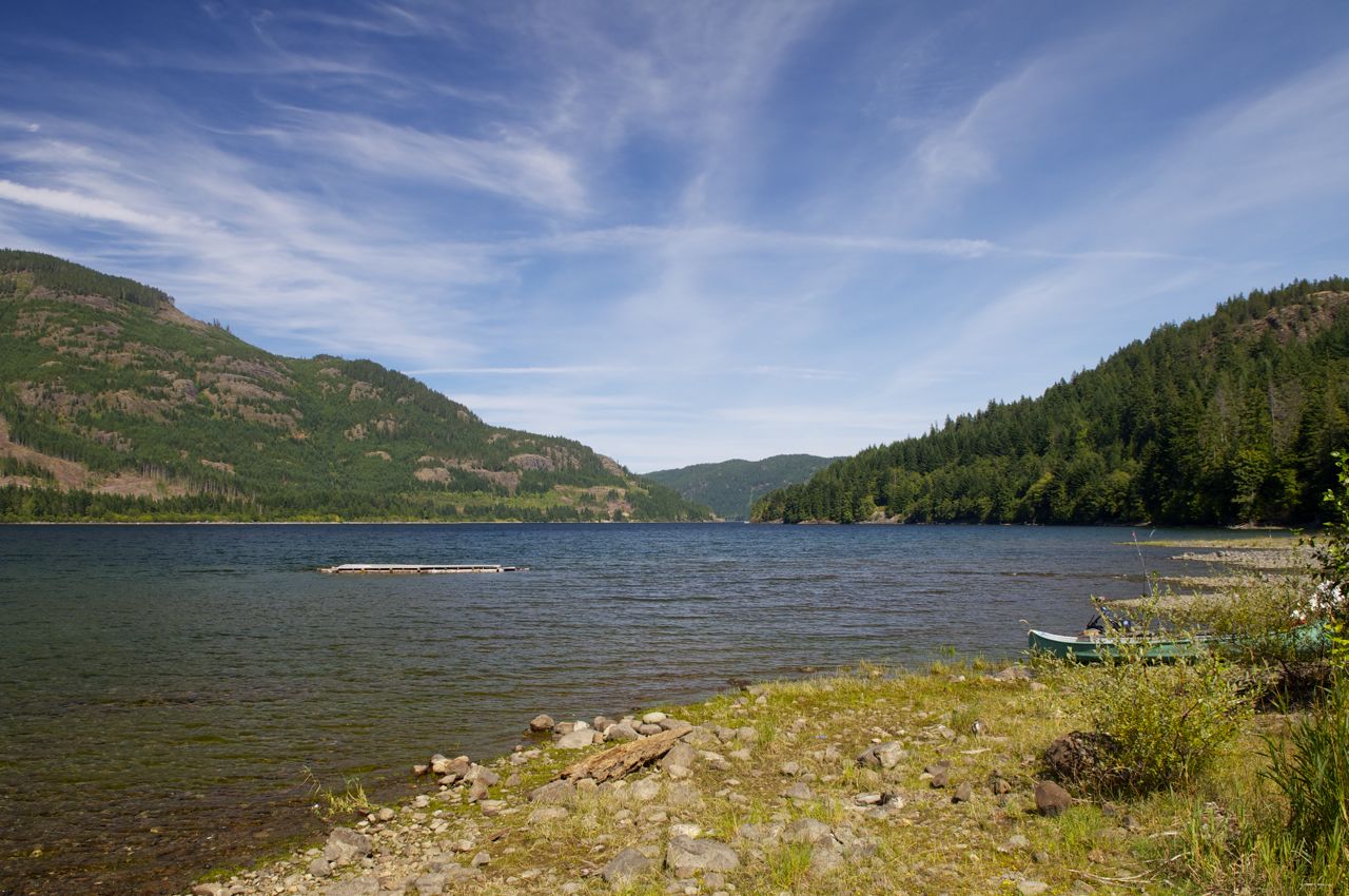 Nachdem wir einigen Anglern beim Lachs-Fischen zugesehen haben, ging es heute wieder einmal von der Ost- an die Westküste (und wieder zurück). Dabei genügte es, die Insel zu etwa 2/3 zu durchqueren, denn auch an unserem Ziel in der Nähe von Gold River ragt ein Fjord weit ins Landesinnere. Erstmals hatten wir heute ausschließlich menschenleere Natur, denn in Gold River gibt es fast nichts und auf dem Weg dorthin rund 100 km lang gar nichts. Am Abend schauten wir – zurück in Campbell River – noch Fischern in ihren Ruderbooten beim Fischen in der Strait of Georgia zu.