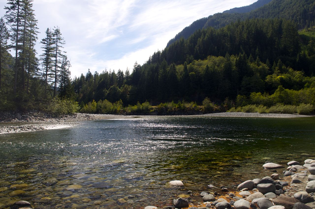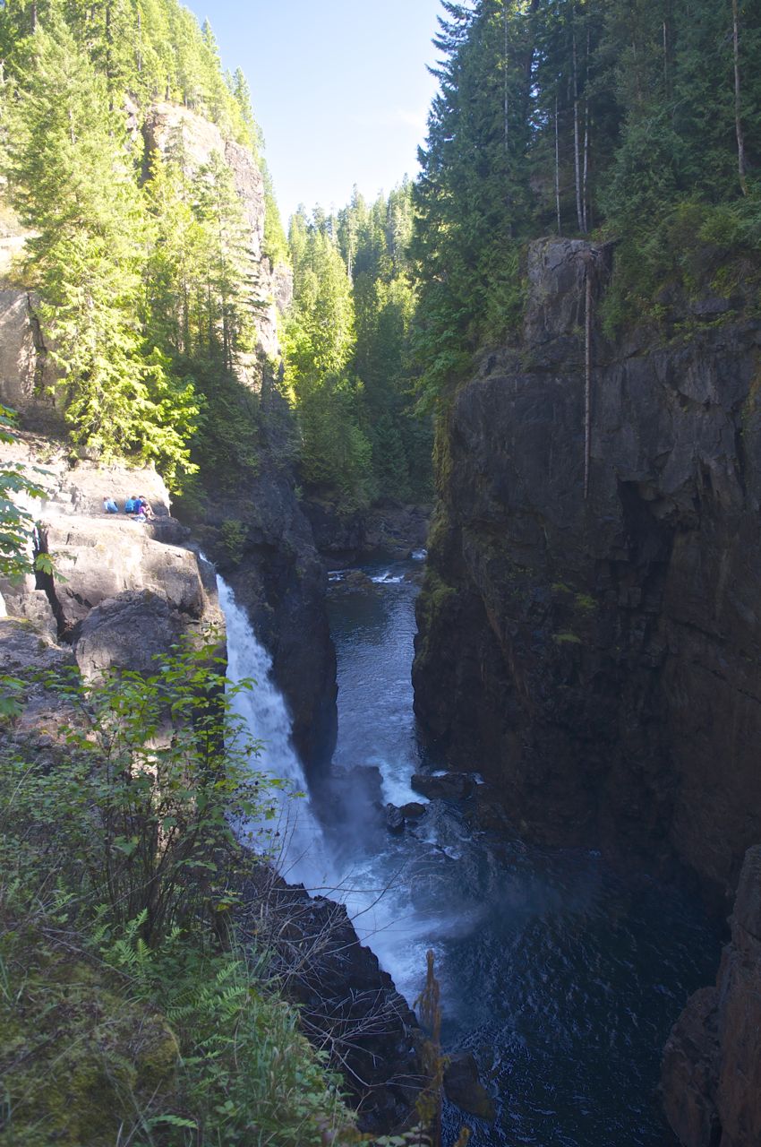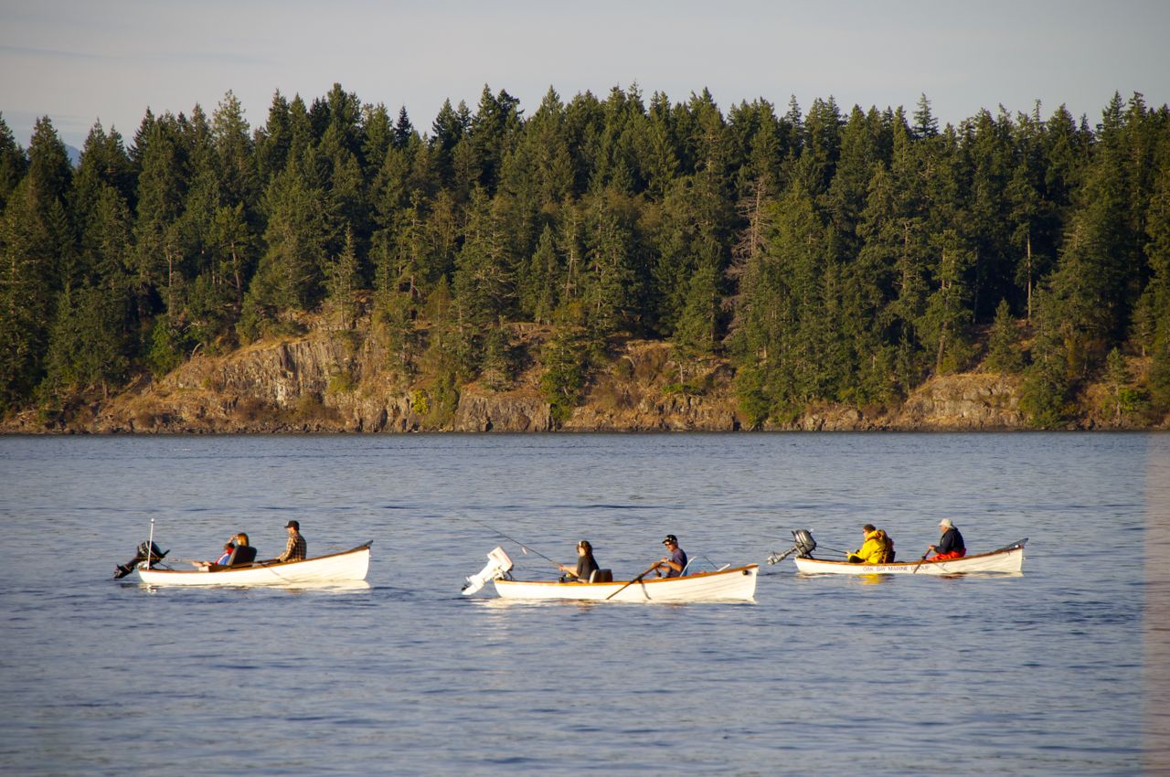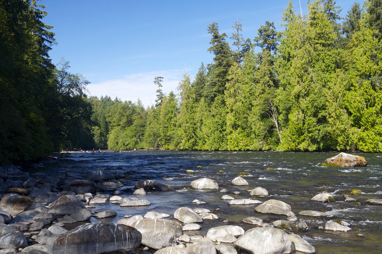 Nachdem wir einigen Anglern beim Lachs-Fischen zugesehen haben, ging es heute wieder einmal von der Ost- an die Westküste (und wieder zurück). Dabei genügte es, die Insel zu etwa 2/3 zu durchqueren, denn auch an unserem Ziel in der Nähe von Gold River ragt ein Fjord weit ins Landesinnere. Erstmals hatten wir heute ausschließlich menschenleere Natur, denn in Gold River gibt es fast nichts und auf dem Weg dorthin rund 100 km lang gar nichts. Am Abend schauten wir – zurück in Campbell River – noch Fischern in ihren Ruderbooten beim Fischen in der Strait of Georgia zu.