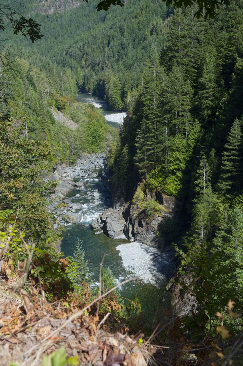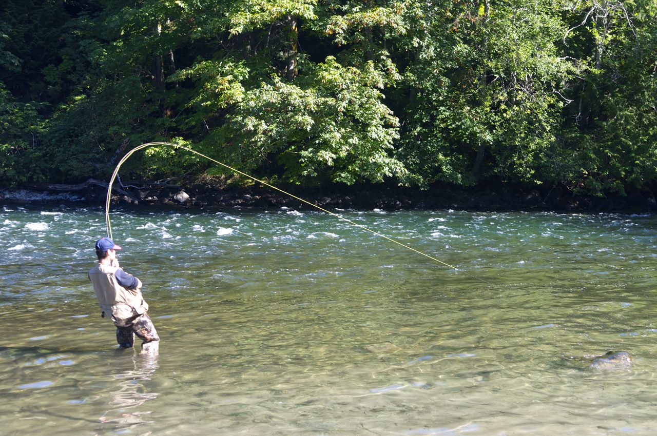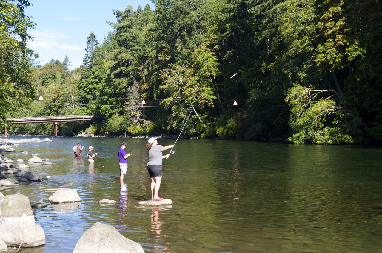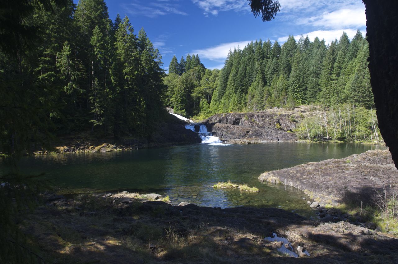 Nachdem wir einigen Anglern beim Lachs-Fischen zugesehen haben, ging es heute wieder einmal von der Ost- an die Westküste (und wieder zurück). Dabei genügte es, die Insel zu etwa 2/3 zu durchqueren, denn auch an unserem Ziel in der Nähe von Gold River ragt ein Fjord weit ins Landesinnere. Erstmals hatten wir heute ausschließlich menschenleere Natur, denn in Gold River gibt es fast nichts und auf dem Weg dorthin rund 100 km lang gar nichts. Am Abend schauten wir – zurück in Campbell River – noch Fischern in ihren Ruderbooten beim Fischen in der Strait of Georgia zu.