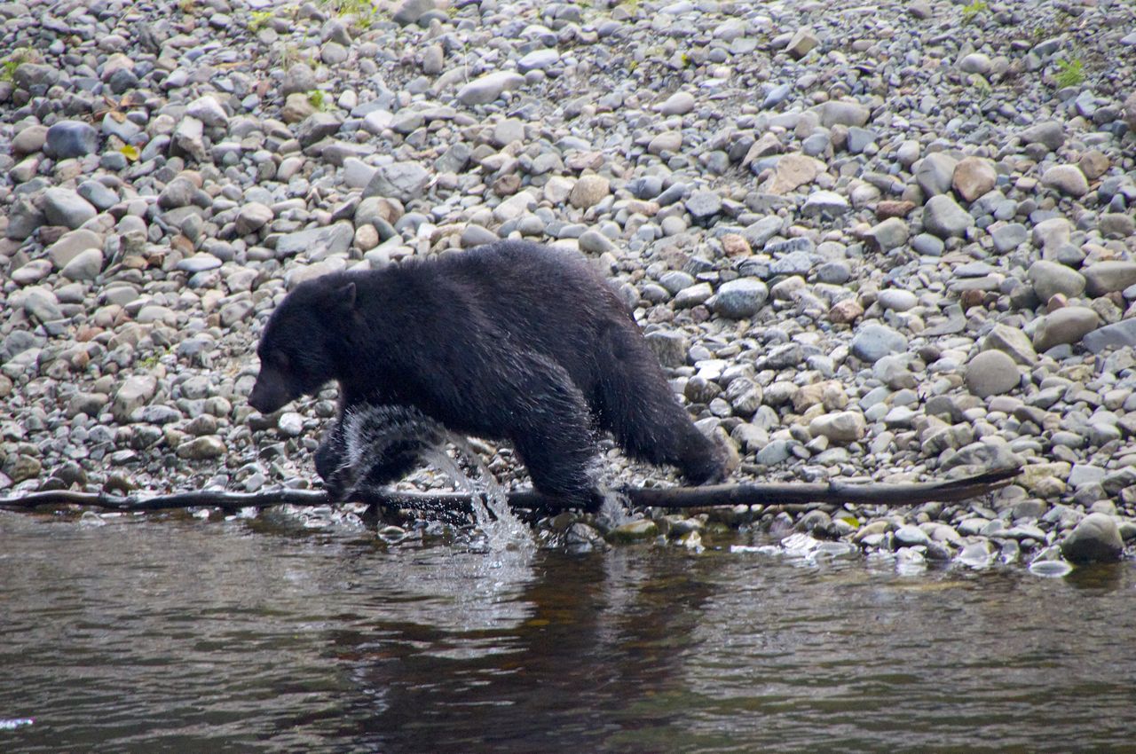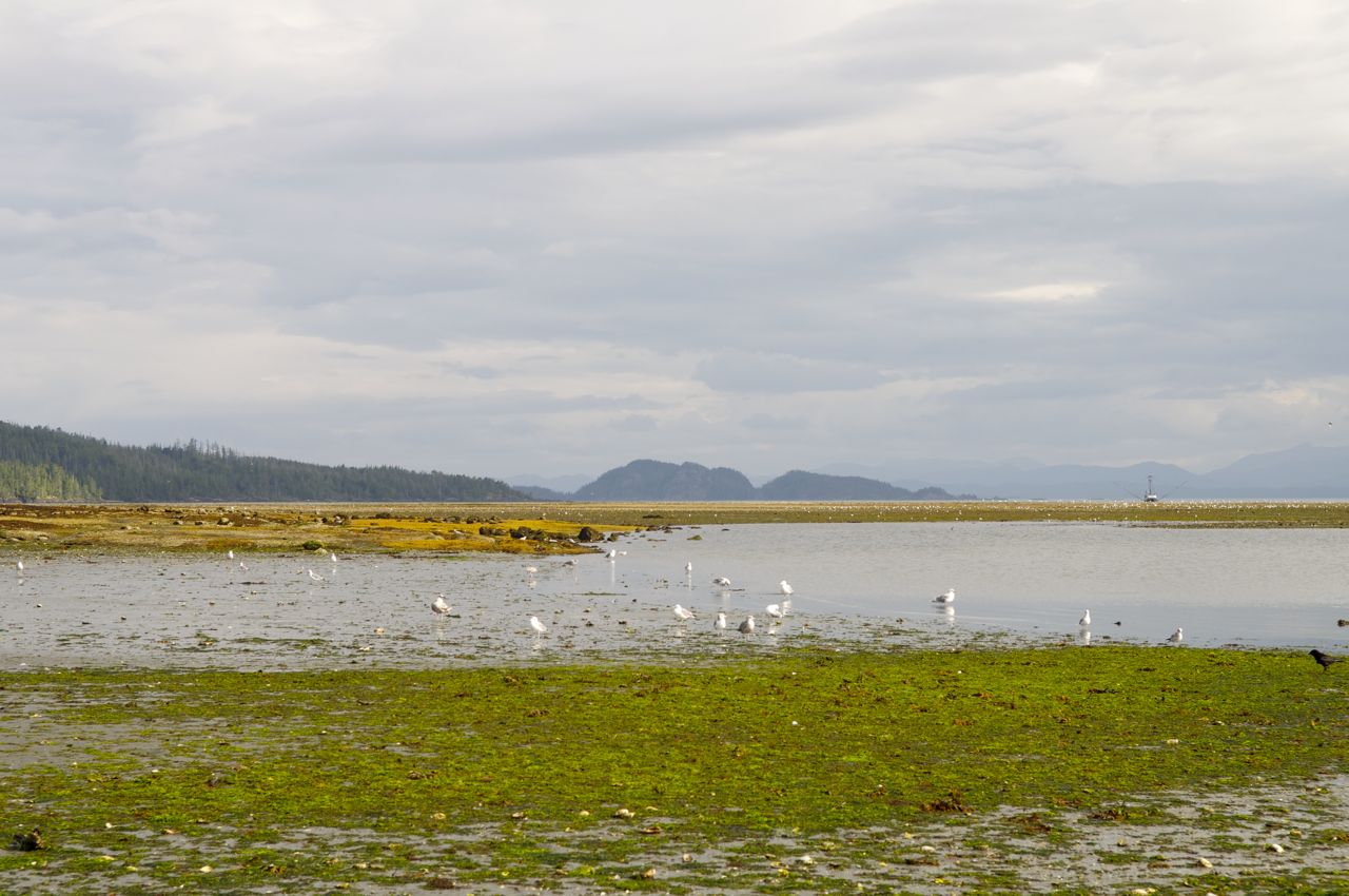 Am Ende der Welt ist die Welt zu Ende – da geht es nicht weiter. Und in Port Hardy ist es soweit. Trotzdem kann man hier einiges erleben und lernen. Wir wurden z. B. dreimal von Lachsen gebissen, Thomas zweimal und Mia einmal. Wir haben nämlich eine Lachsaufzucht besucht und durften unsere Finger reinhalten. Die Lachse waren allerdings nicht größer als unsere kleinen Finger. Sie sind aber schon erstaunlich hoch den Wasserzufluss hinaufgesprungen – ein mehrfaches ihrer Körpergröße – so wie sie später als ausgewachsene Tiere auch Wasserfälle hinauf "schwimmen". Und wir haben auch gelernt, dass Schwarzbären im Normalfall nur die Eier der weiblichen Lachse essen. Die männlichen Lachse werfen sie gleich wieder ins Wasser zurück. Grizzlys essen dagegen nur die Haut der Lachse, Wölfe nur den Kopf und Möwen gar nur die Augen. Und von den ca. 2.500 Eiern, die ein Lachs legt, kommen in der Wildnis vier(!) Lachse nach 1-2 Jahren im Ozean an. Bei den Lachsen aus der Aufzucht, schaffen es immerhin 100 so weit.