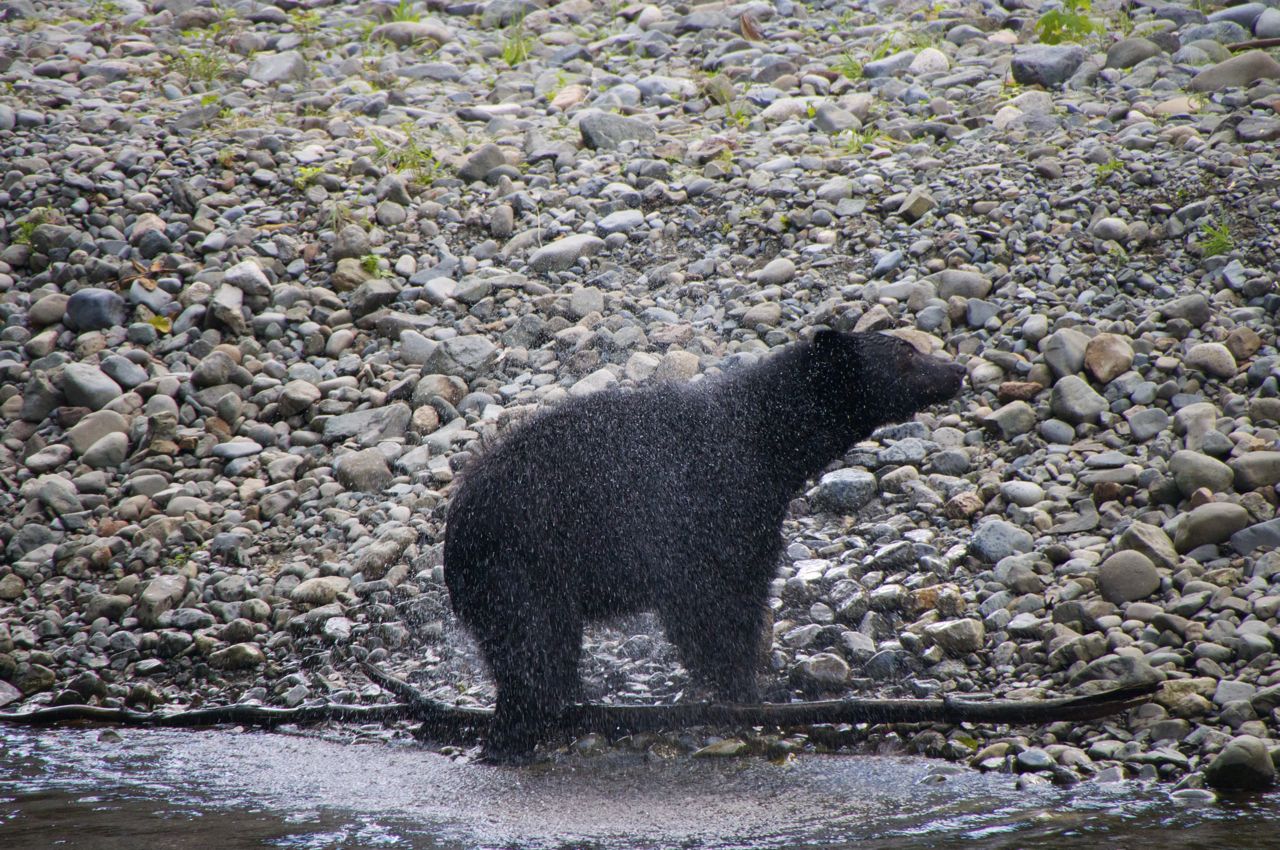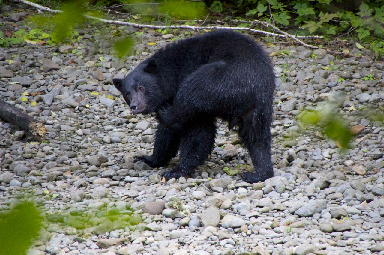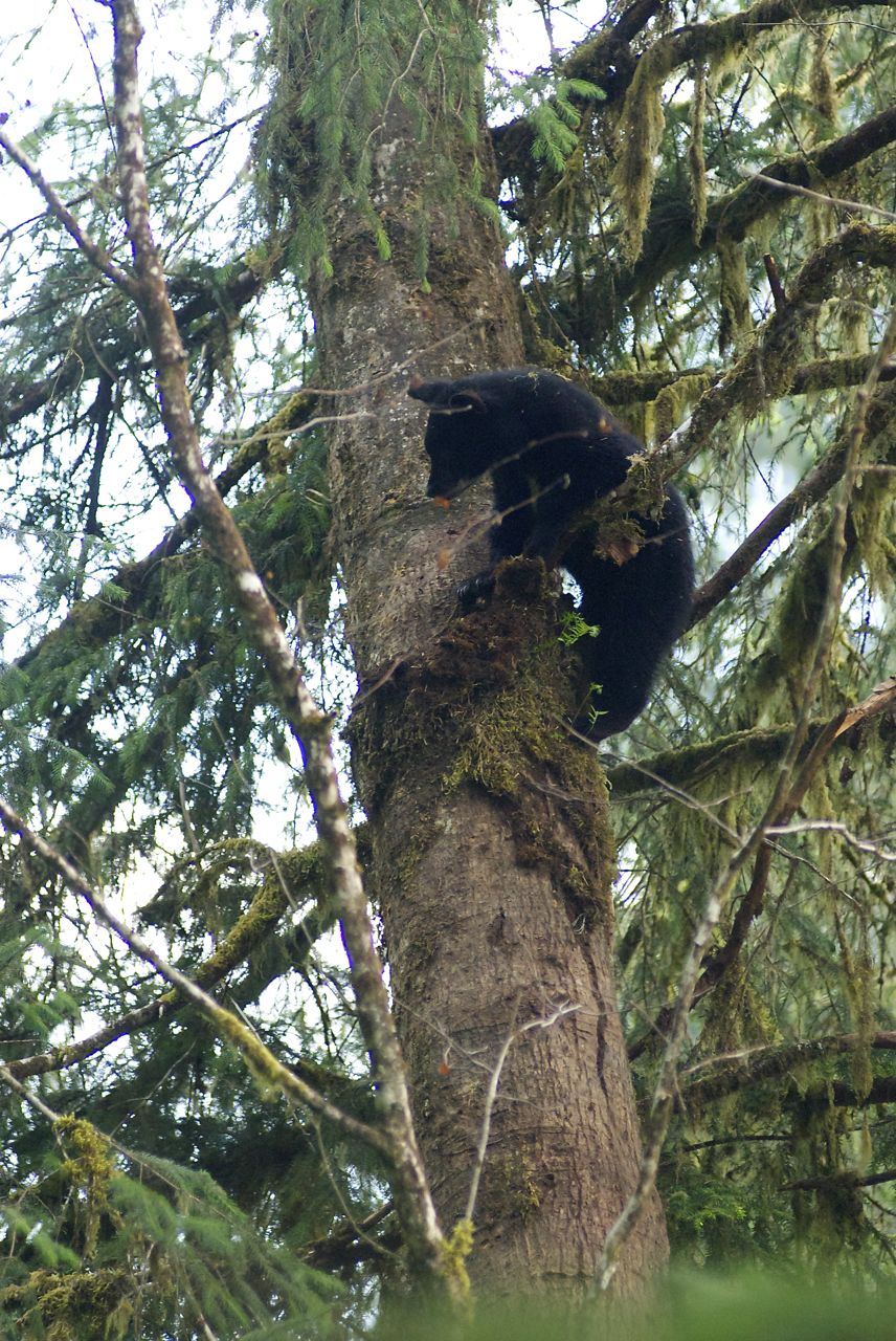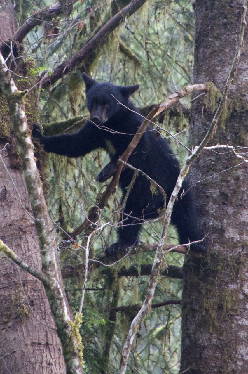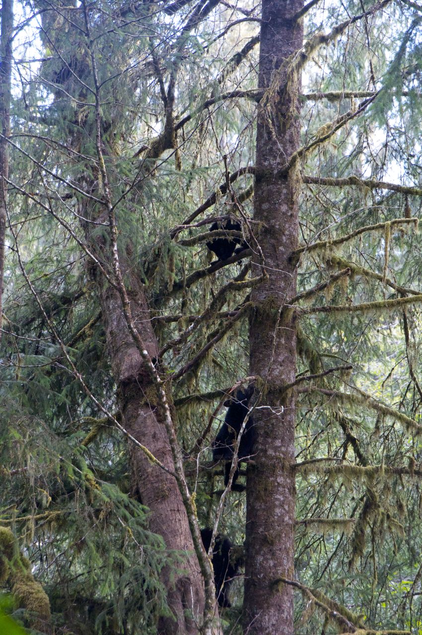Gestern war uns ja schon ganz mulmig, als wir Schwarzbären in freier Wildbahn beobachteten. Heute gab es noch eine ganz massive Steigerung. Wir sahen nämlich eine Mutter mit zwei Jungen. Anfangs kletterten die drei noch auf einen Baum, weil die Mutter die Kleinen vor einem anderen Bären schützen wollte. Doch als dieser weg war, kamen sie herunten und plötzlich standen sie uns auf einem schmalen Wanderweg Auge in Auge gegenüber. Da haben wir beschlossen, dass ein geordneter Rückzug die beste Lösung ist, wenn Ihr auch in den nächsten Tagen noch Blogeinträge von uns lesen möchtet.