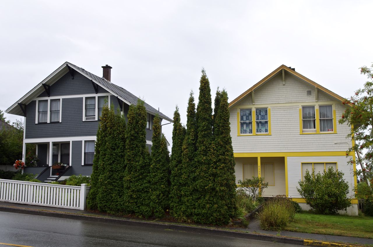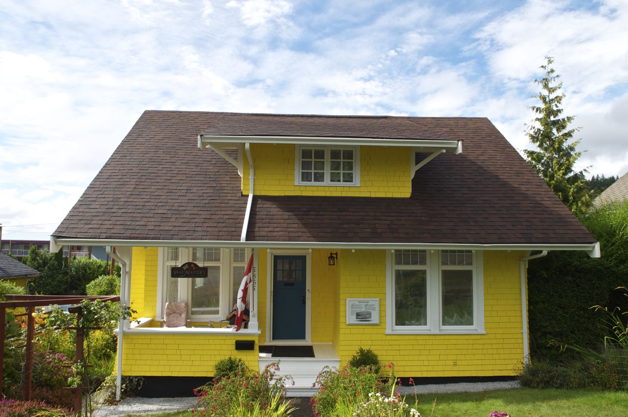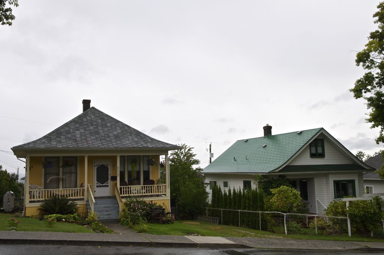 Ansonsten haben wir heute auch auf dem Festland Elche gesehen, jedoch auch etwas, was in Kanada sehr viel seltener ist als wilde Tiere: Fachwerkhäuser! Wir haben nämlich die historische Altstadt von Powell River besichtigt. Dabei solltet Ihr keine europäischen Maßstäbe anlegen, denn die Stadt wurde zwischen 1910 und 1930 erbaut. Das Kino (erstes Foto in der vorletzten Reihe) ist übrigens das älteste noch in Betrieb befindliche Kino Kanadas. Und das Haus des ersten Postmeisters (das gelbe Haus) durften wir auch von innen besichtigen. Der neue Besitzer hat uns einfach eingeladen, es anzuschauen – war echt faszinierend.