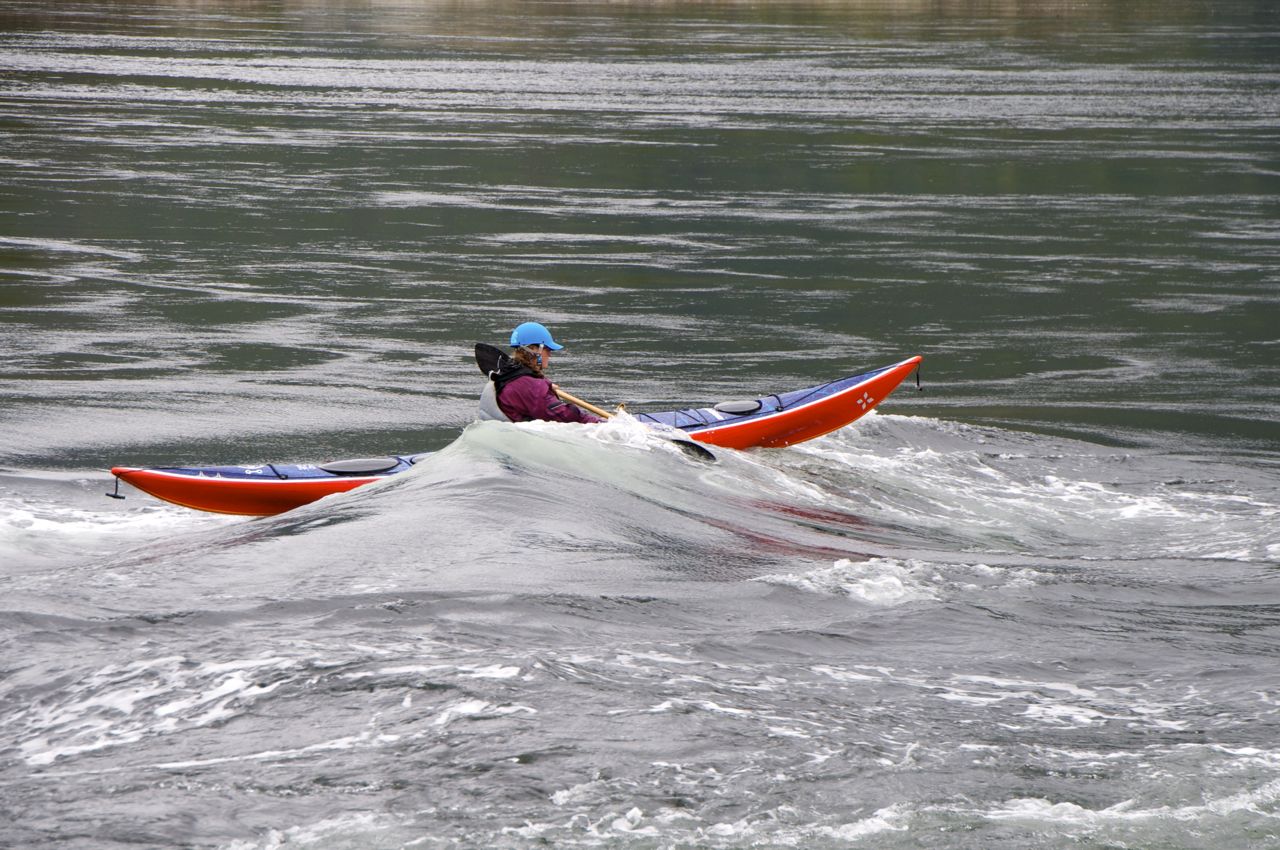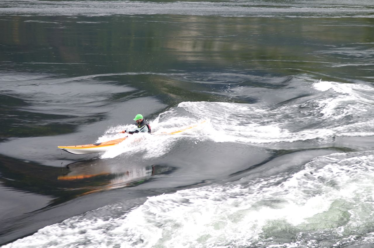 Die Fotos von den Kajakfahrern stammen übrigens aus dem o. g. Regenwald. Bei den Stromschnellen handelt es sich um einige der schnellsten weltweit und der Meeresarm verliert an dieser Stelle 2 m an Höhe.