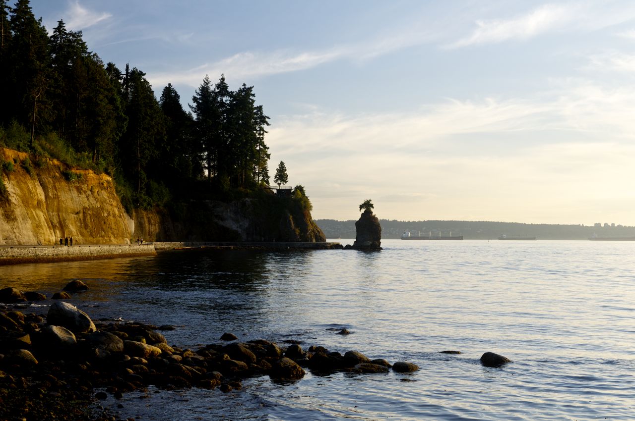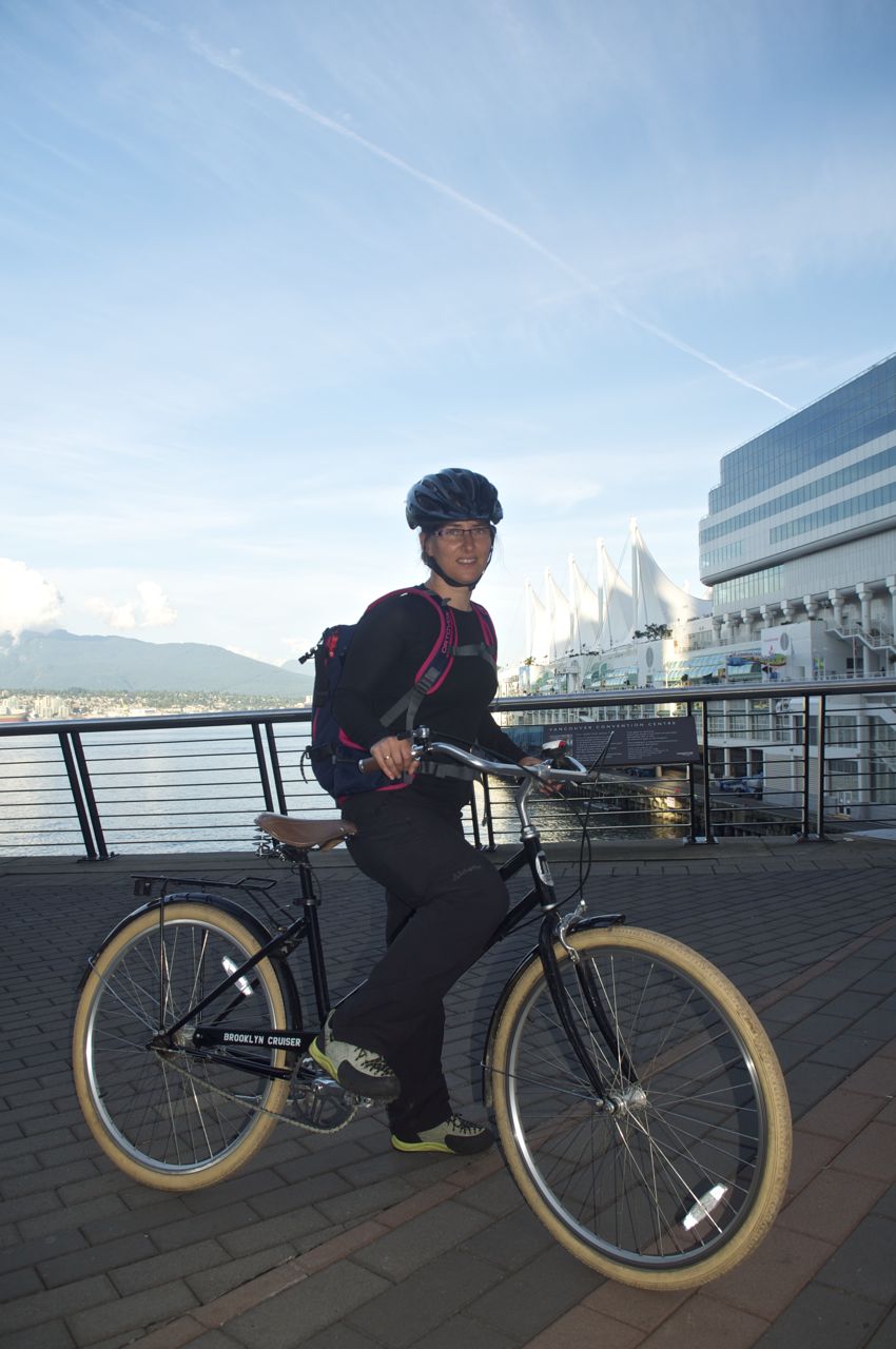 Heute haben wir unser Auto kaum gebraucht. An der Sunshine Coast Richtung Süden verbrachten wir die meiste Zeit auf Fähren und dazwischen zu Fuß in irgendwelchen Regenwäldern. Und als wir wieder in Vancouver angekommen waren, sind wir aufs Fahrrad umgestiegen. Kurz vor diesem Umstieg haben wir erfolgreich die größte fahrerische Herausforderung in diesem Urlaub gemeistert: Hotelsuche in der Rush Hour im Zentrum einer Großstadt auf einer sechsspurigen Straße, auf der Linksabbiegen verboten ist, unser Hotel aber auf der linken Straßenseite lag, mit Einbahnstraßen, die den Weg versperrten und allem was einem zu Hause entgeht, wenn man immer nur mit der U-Bahn oder dem Rad unterwegs ist. ;-)