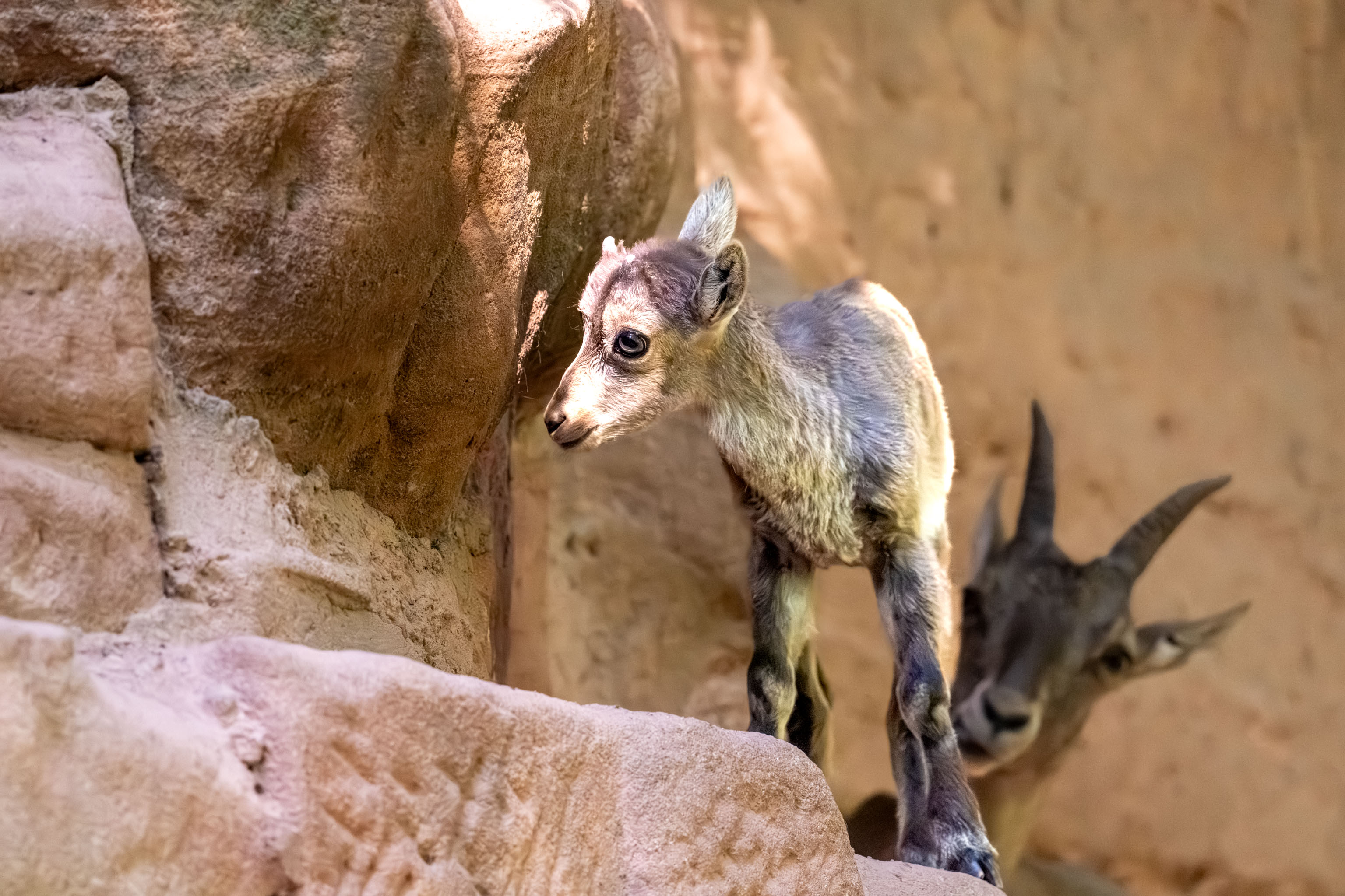 Angefangen hat die Führung am Steinbockgehege mit genau den Steinböcken. Diese waren in den Alpen – bis auf eine kleine Population in Italien – fast ausgestorben und wurden dann – auch mit nach wie vor stattfindenden Auswilderungen aus Nürnberg – wieder in vielen anderen Regionen der Alpen angesiedelt.