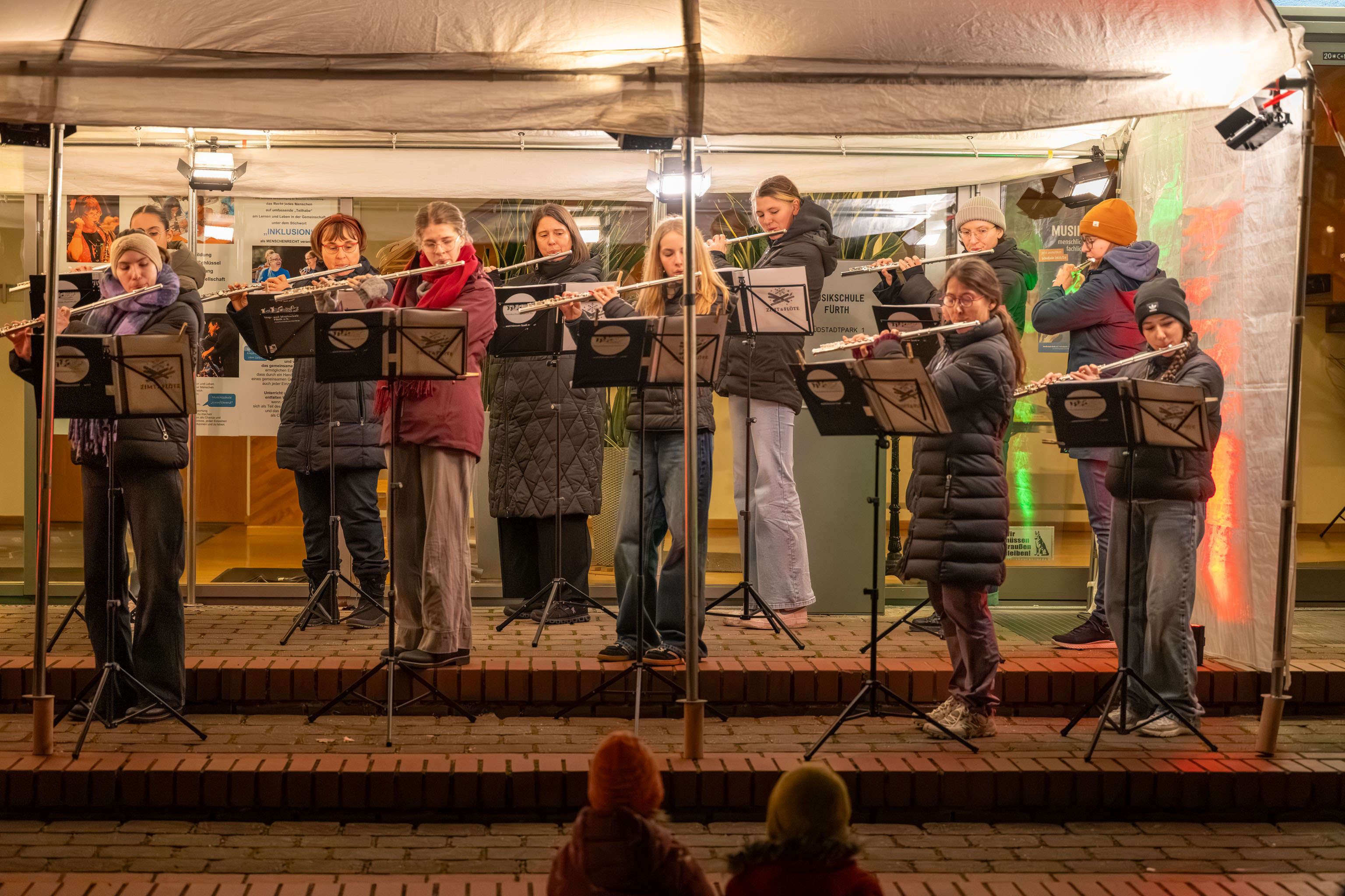 Wie jedes Jahr spielte auch heuer wieder jeden Abend vom 1. bis zum 24. Dezember ein anderes Ensemble vor der Musikschule im Fürther Südstadtpark.