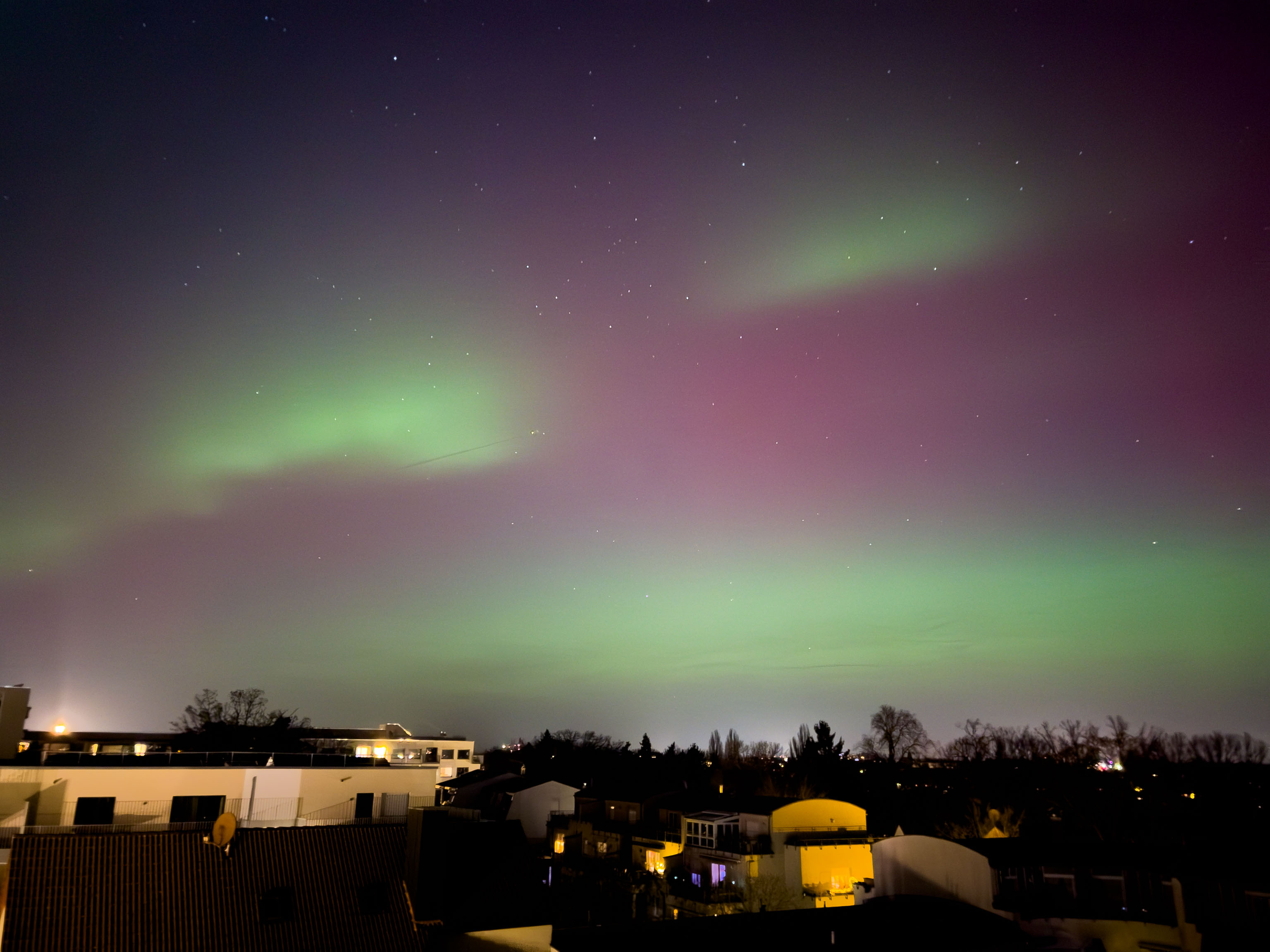 Um dreivertel elf machte uns ein Freund darauf aufmerksam, dass es gerade richtig schöne Polarlichter bei uns gibt.